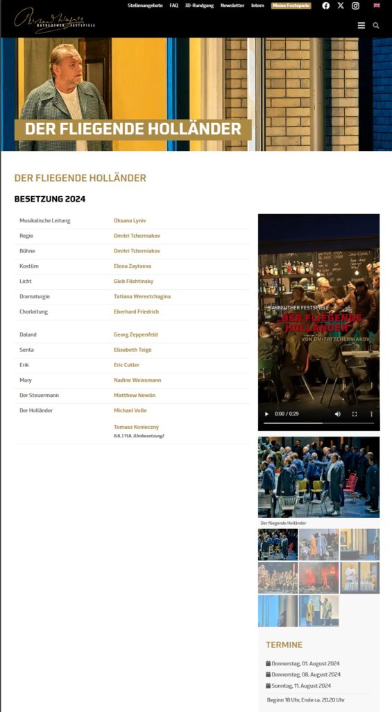 さまよえるオランダ人上演初日となる2024年8月1日の模様はバイエルン放送協会により映像がライブ配信されています。