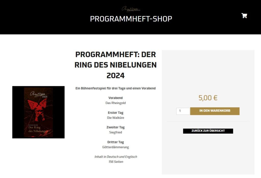 バイロイト音楽祭公式サイトで「トニーベルングの指輪」プログラム冊子を購入することができます。