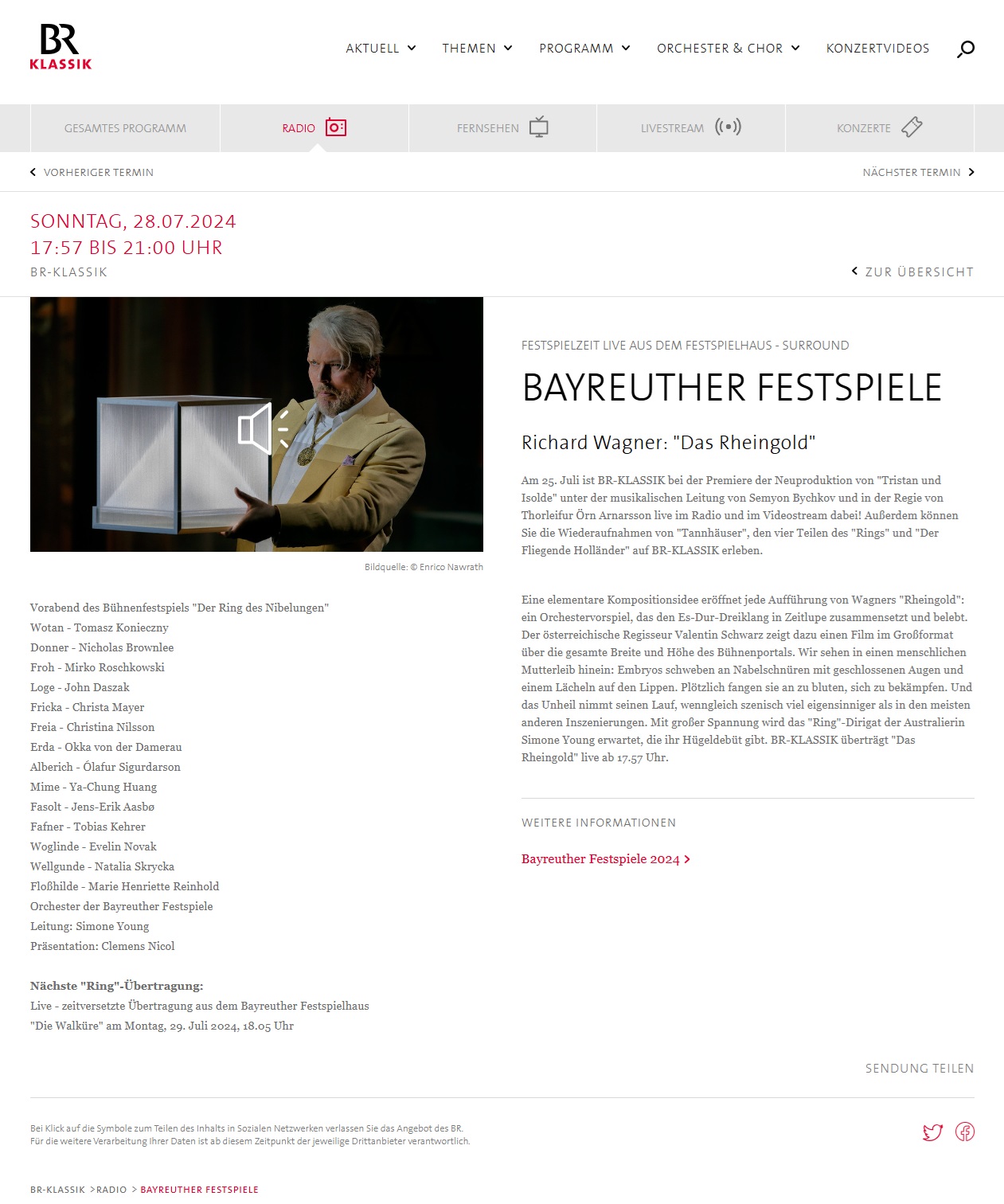 “Die Walküre” am Montag, 29. Juli 2024, 18.05 Uhr